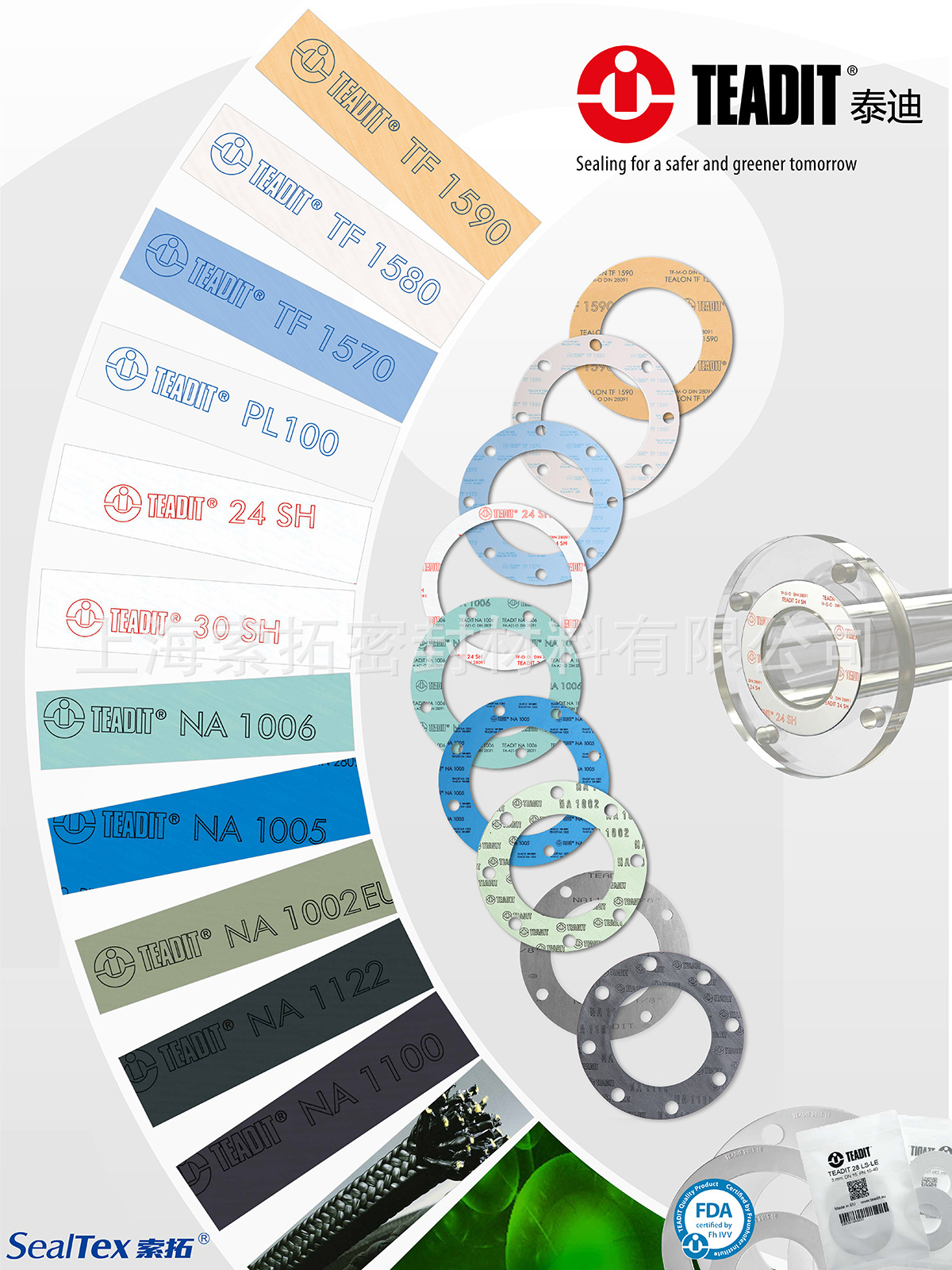上海索拓長期致力于無石棉環保密封墊片的生產,加工,銷售。與世界知名密封材料品牌都有良好的合作關系。如奧地利的TEADIT,澳大利亞的KLINGER。美國Interface,西班牙MONTERO,德國REINZ等等。